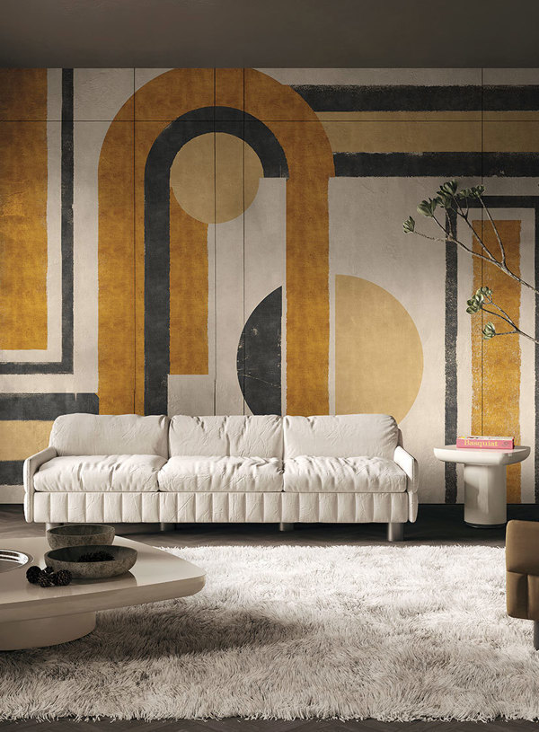 Thanks to the closed cell PVC foam layer, Soundproof reduces noises coming both from outside and inside a building. The support, intervening technically on the reverberation, is particularly suitable for all environments that require greater tranquillity, like: executive and operative offices, open-plan offices, restaurants, gyms, swimming pools, and private homes. Furthermore, by meeting the needs of acoustic correction, it is also suitable for all places that require purity in the diffusion of sounds, like: cinemas and audition halls, conference halls, theatres, clubs, domestic environments with Hi-Fi systems. The ease of application of the product lets you create articulated compositions of great impact easily and quickly, and, thanks to its thickness, it can be applied on walls that are not perfectly treated, hiding irregularities.